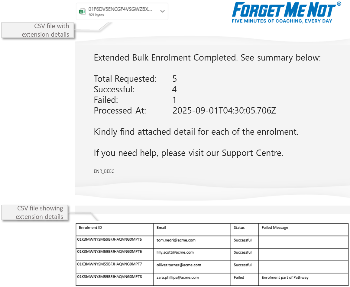 Admin Bulk Enrolment Extend Completed Email