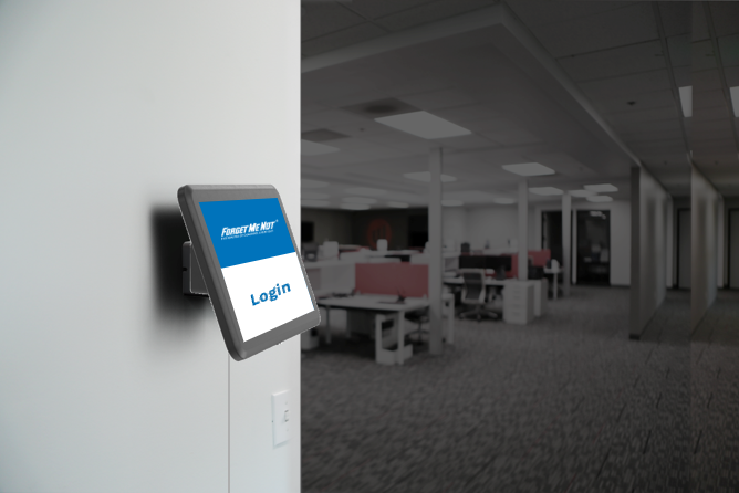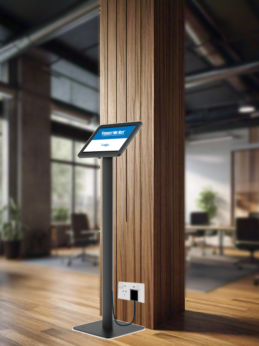 Artist impression of Forget Me Not® Freestanding Kiosk in a desktop mounted location