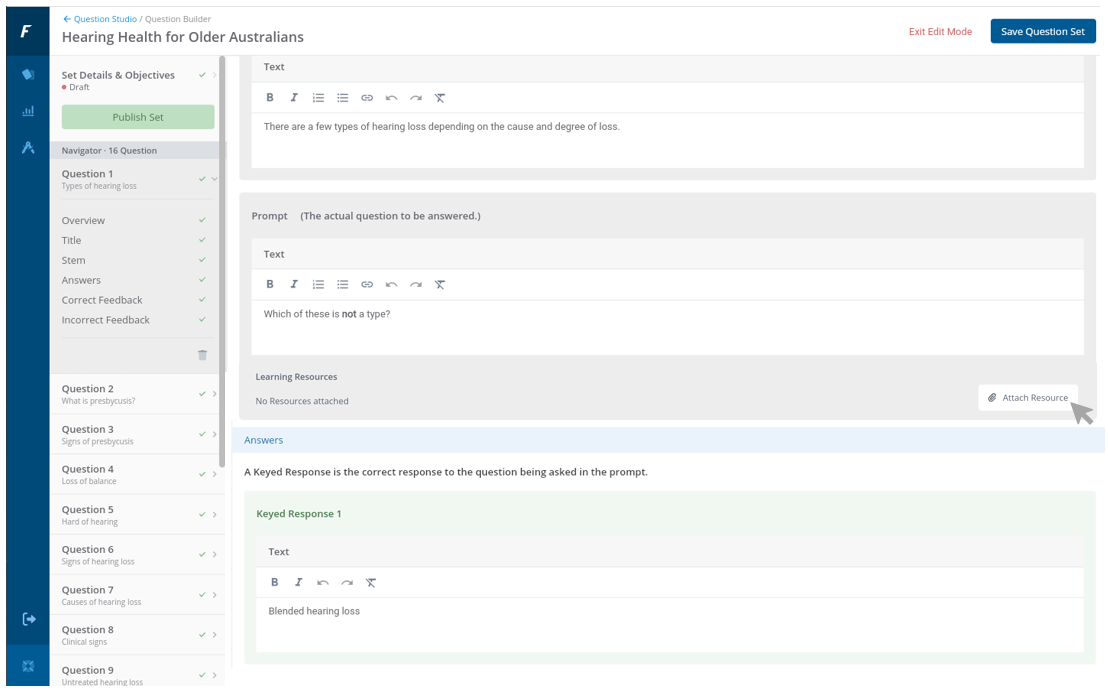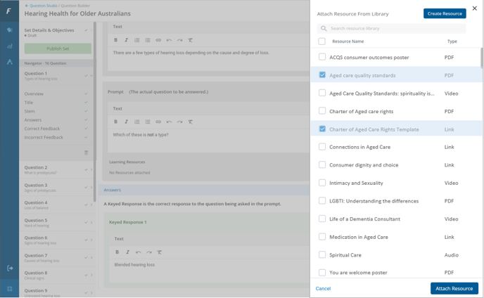 How to attach learning resources to a Question Set