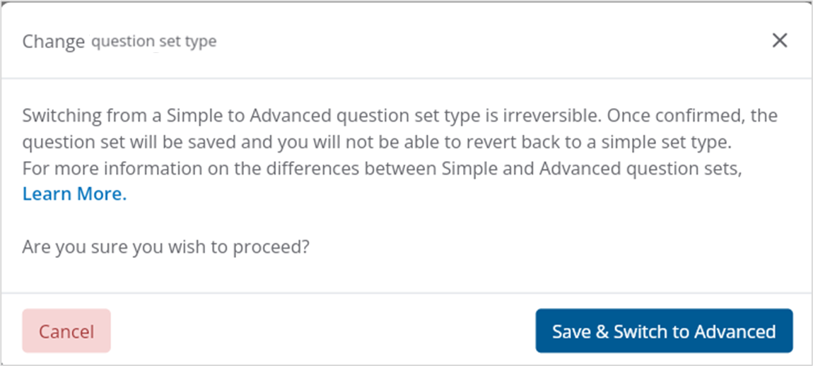 ⚠️Once a question set is changed from Simple to Advanced it is not possible to revert this action