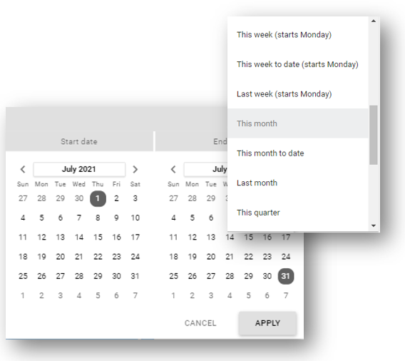 ✅ Use the predefined filter options to pick date blocks such as days, weeks, months, quarters, years etc