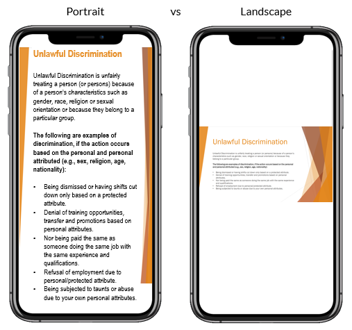 • Text Size - Consider the size of the text or image used in the source document - make sure it's large enough to read on a phone. The learner can zoom in, but small fonts will need a lot of zooming