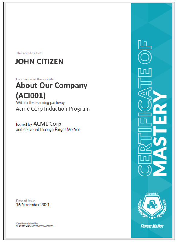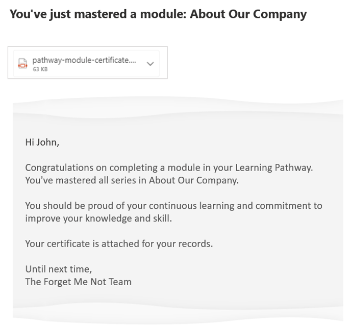 Learn how the module mastery email provides a certificate for the acknowledgement that all Series within a Module of an Interleaved Learning Pathway have been mastered