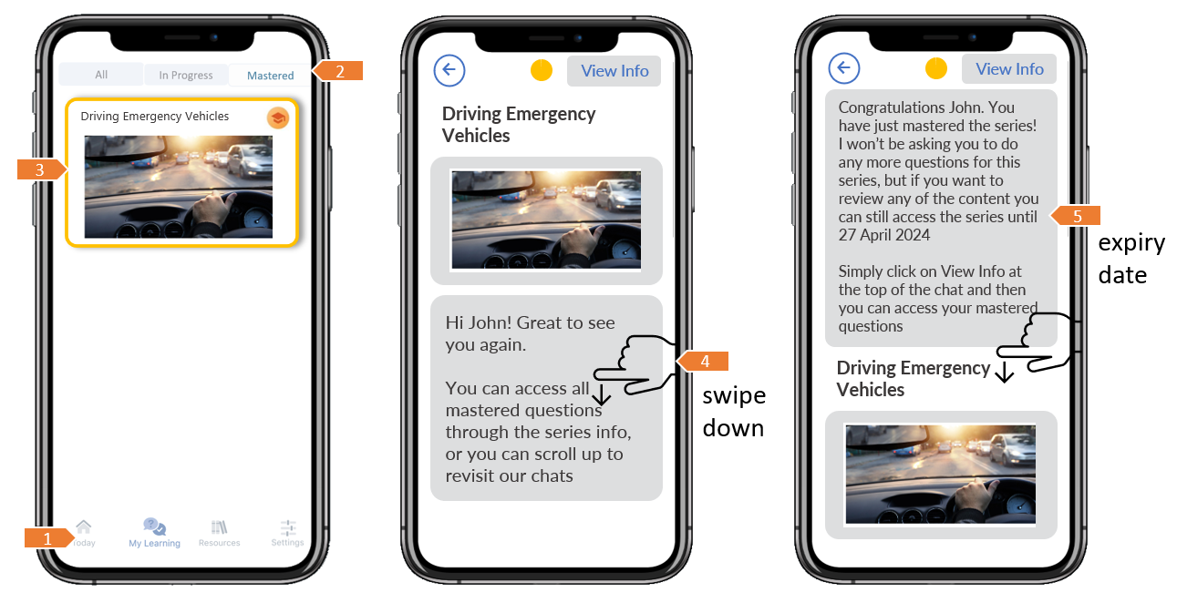 ▶️ Tap My Learning and then Mastered, Select the Series from the list. Then swipe down to show the previous chat history, the last chat message shows when the Series will expire.