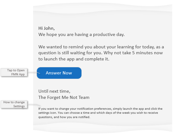 Learn how the 'next question still waiting' email arrives 2 hours after the initial notification and provides an extra notification that a new question is ready to answer.