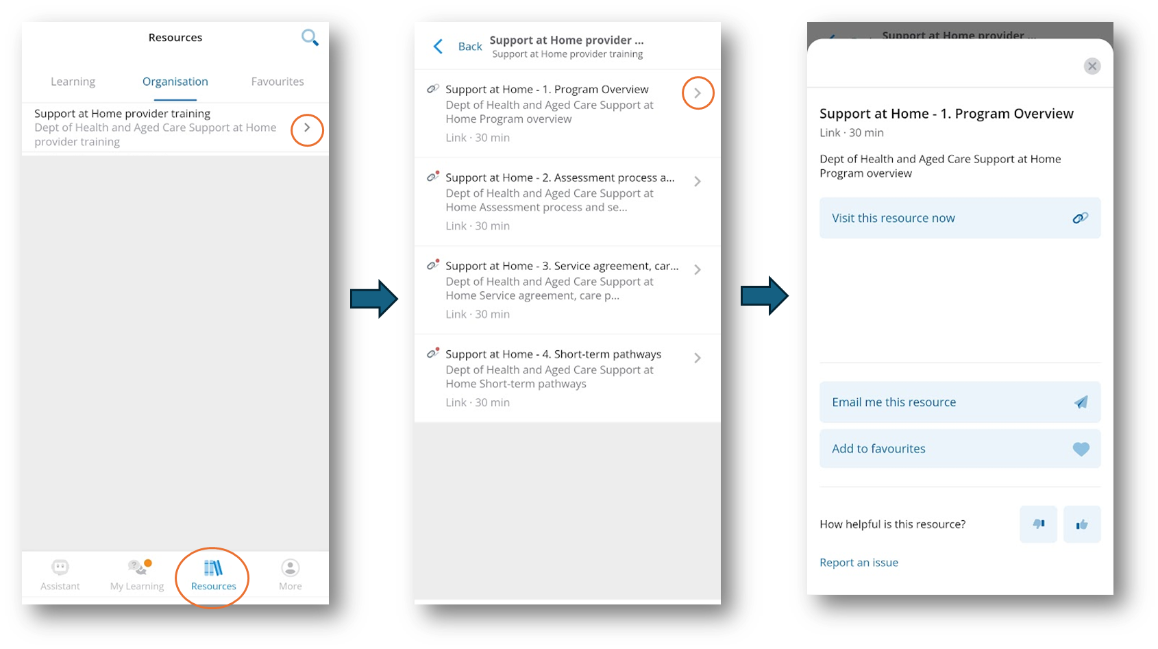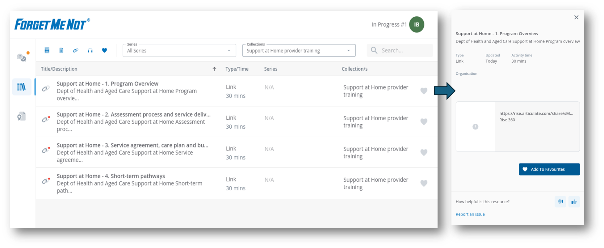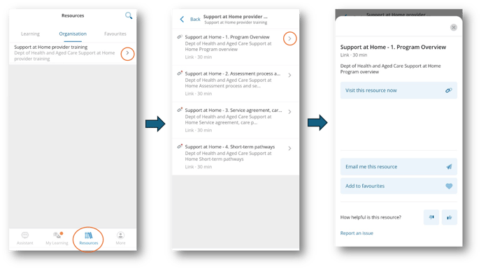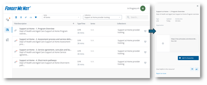 Example of how the learner would see the organisational resource collection