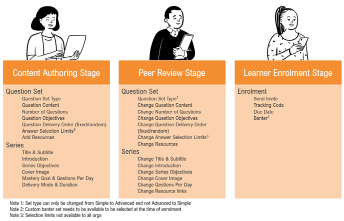 Questions, Resources and Series content can be changed at specific stages of the process, after each stage passes, it may not be possible to make more changes