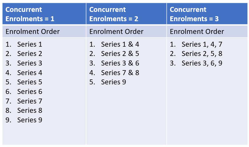 ⚠️ Actual enrolment order of the 2nd and subsequent enrolments for concurrent enrolments >1 will depend on the order in which Series are mastered by the learner